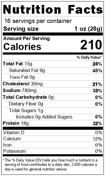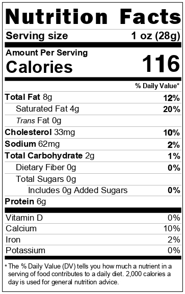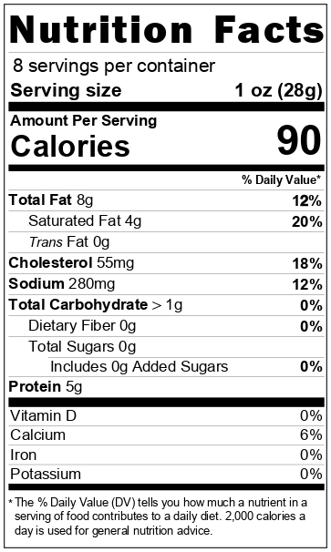 Ingredients: Culture Milk, Rennet, Enzymes, Salt Smoked with Mixed Hardwoods
