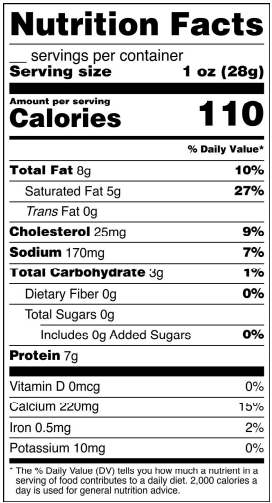 Ingredients: Culture Milk, Rennet, Enzymes, Salt.